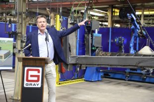 Stet Schanze, Gray Manufacturing president, described the company’s investment in a state-of-the art large parts robotic welder that increased manufacturing capacity by 42%.