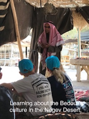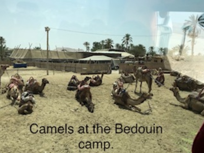 We began the day with a visit to Masada – the southernmost Dead Sea palace of Herod the Great. I should say three palaces – he had one on each level of the mountain. We then drove to the Negev Desert to a Bedouin camp where we rode camels, learned about the Bedouin culture, and shared lunch with them. Our final stop was the Israel Museum in Jerusalem.