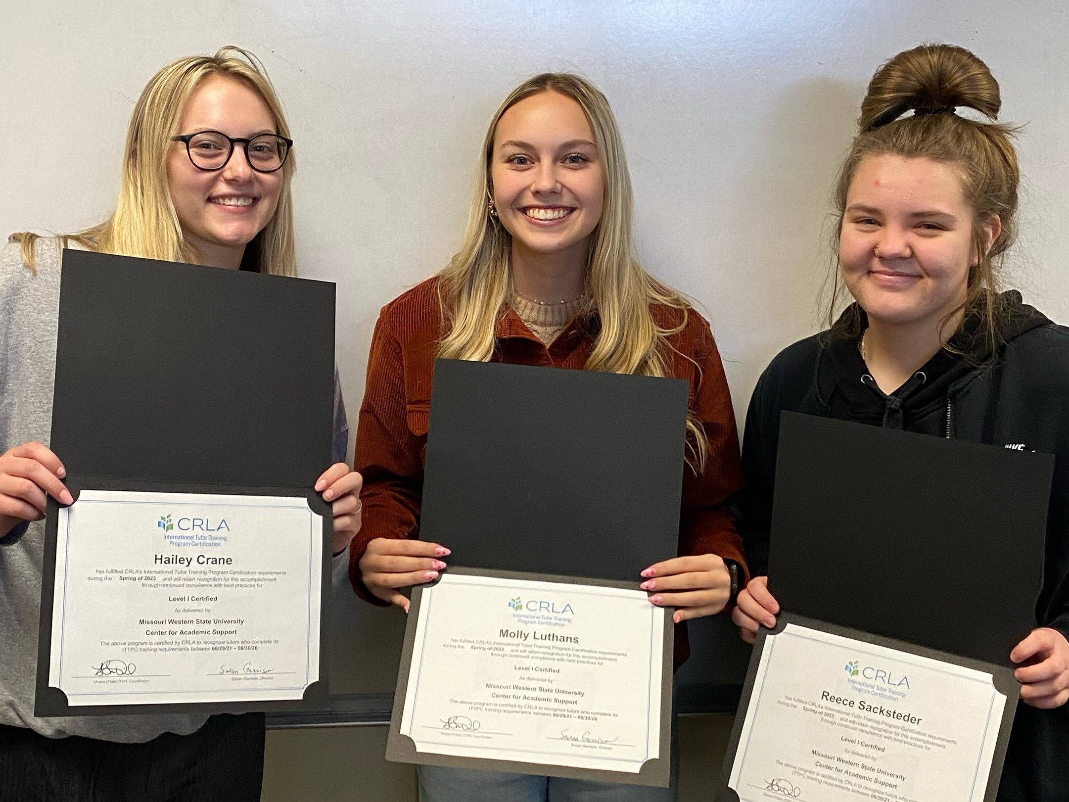 Three student tutors achieve CRLA certification