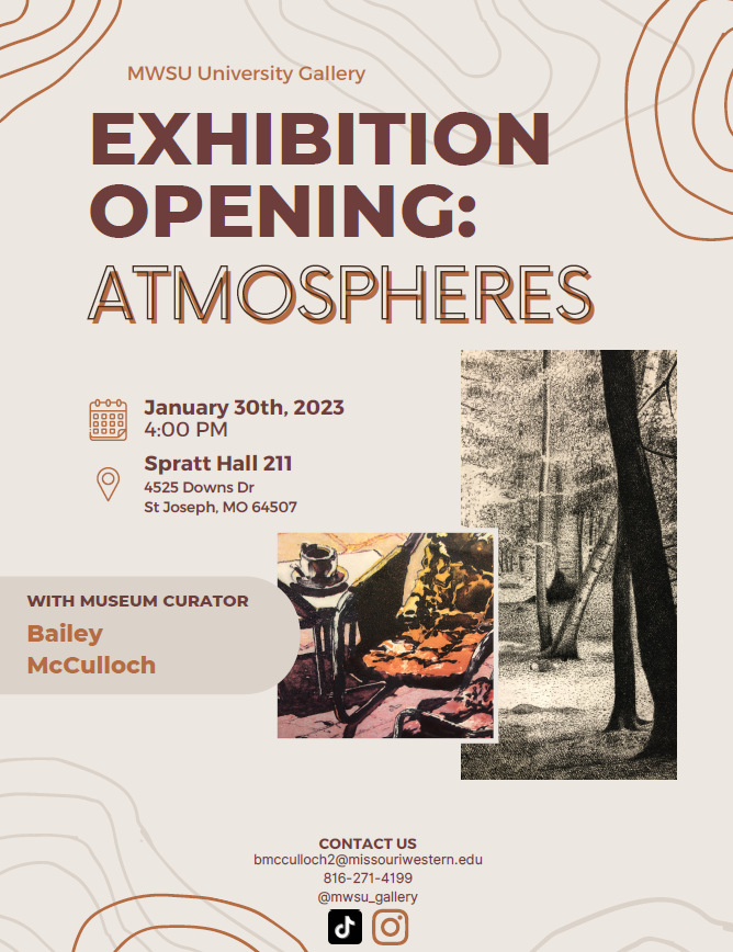 Jan. 27, 2023--The University Gallery inside Spratt Hall at Missouri Western State University will open its new exhibition, “Atmospheres: Works on Paper” from 4 to 6 p.m. Monday, Jan. 30. The opening is free and [...]
