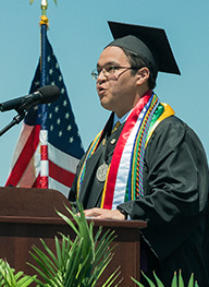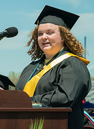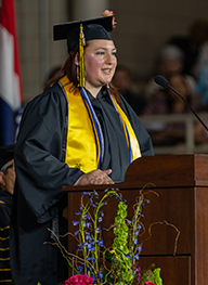 Derek Thompson was the Commencement speaker at our first outdoor commencement ceremony in Spratt Stadium. Derek graduated with a Vocal Music degree. During his time on campus, Derek served as the Phi Sigma Kappa Vice President; the Student Government Association Director of Student Relations; in multiple theatre productions; as the President of the Student Honors Organization President; a concert chorale member; and as a Resident Assistant.