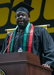Derek’s Commencement speech was entitled, “Don’t Step on the Seal, and Other Ways to Graduate from Missouri Western.”