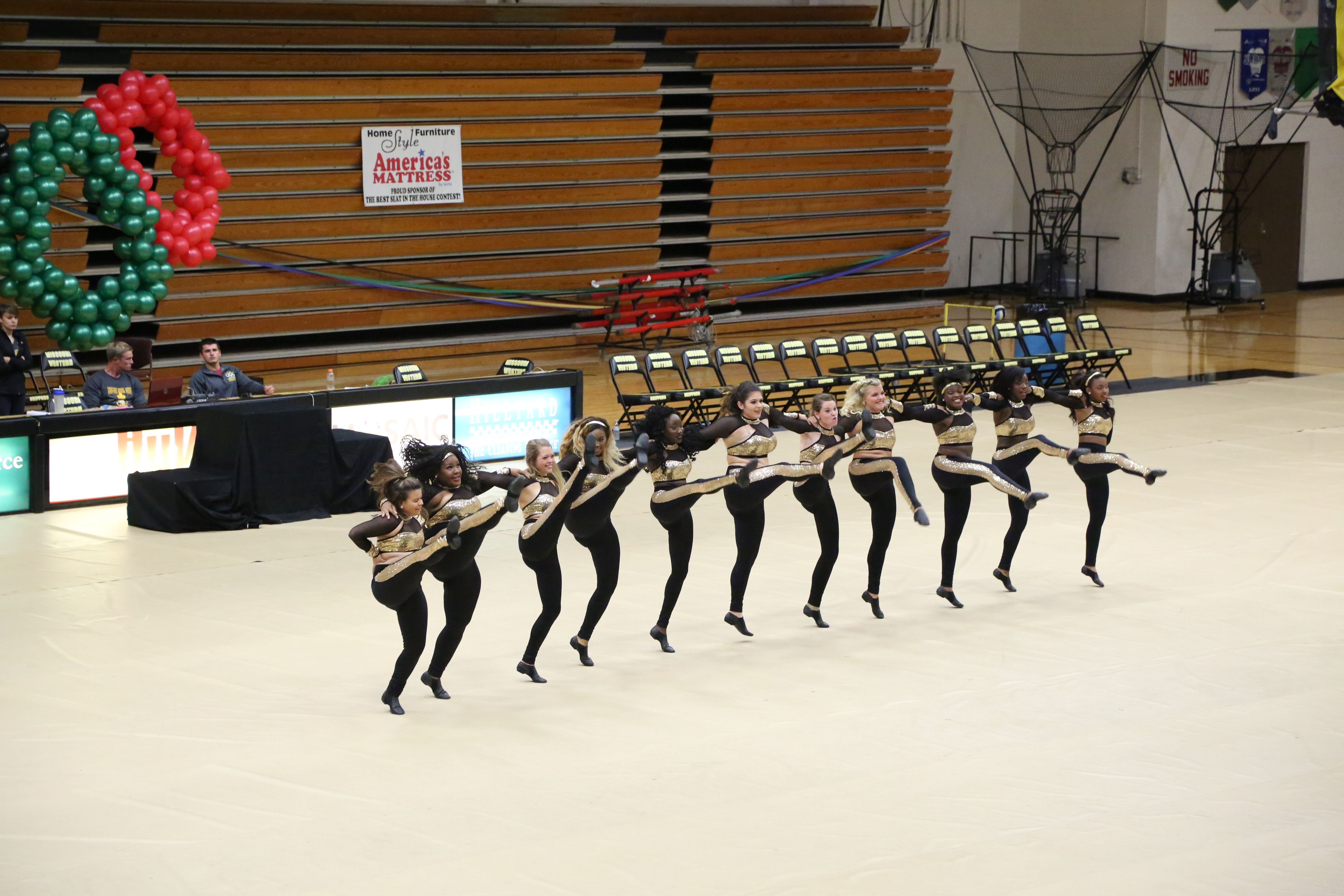 The dance team performs alongside the Western marching band during the football and basketball season. A new dance is learned every two weeks. Most dances that are performed have high energy, allowing the crowd to get pumped up and show their support.