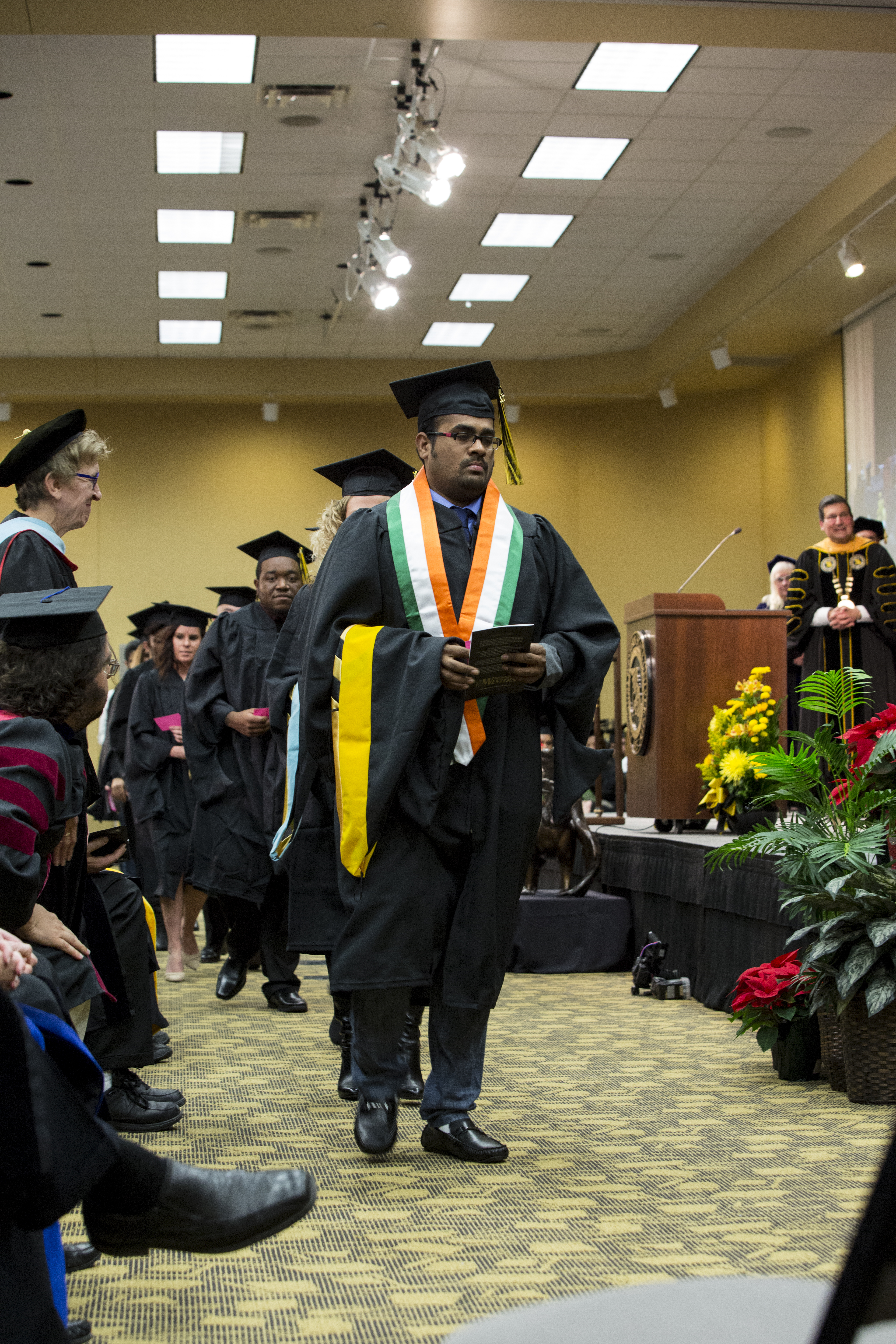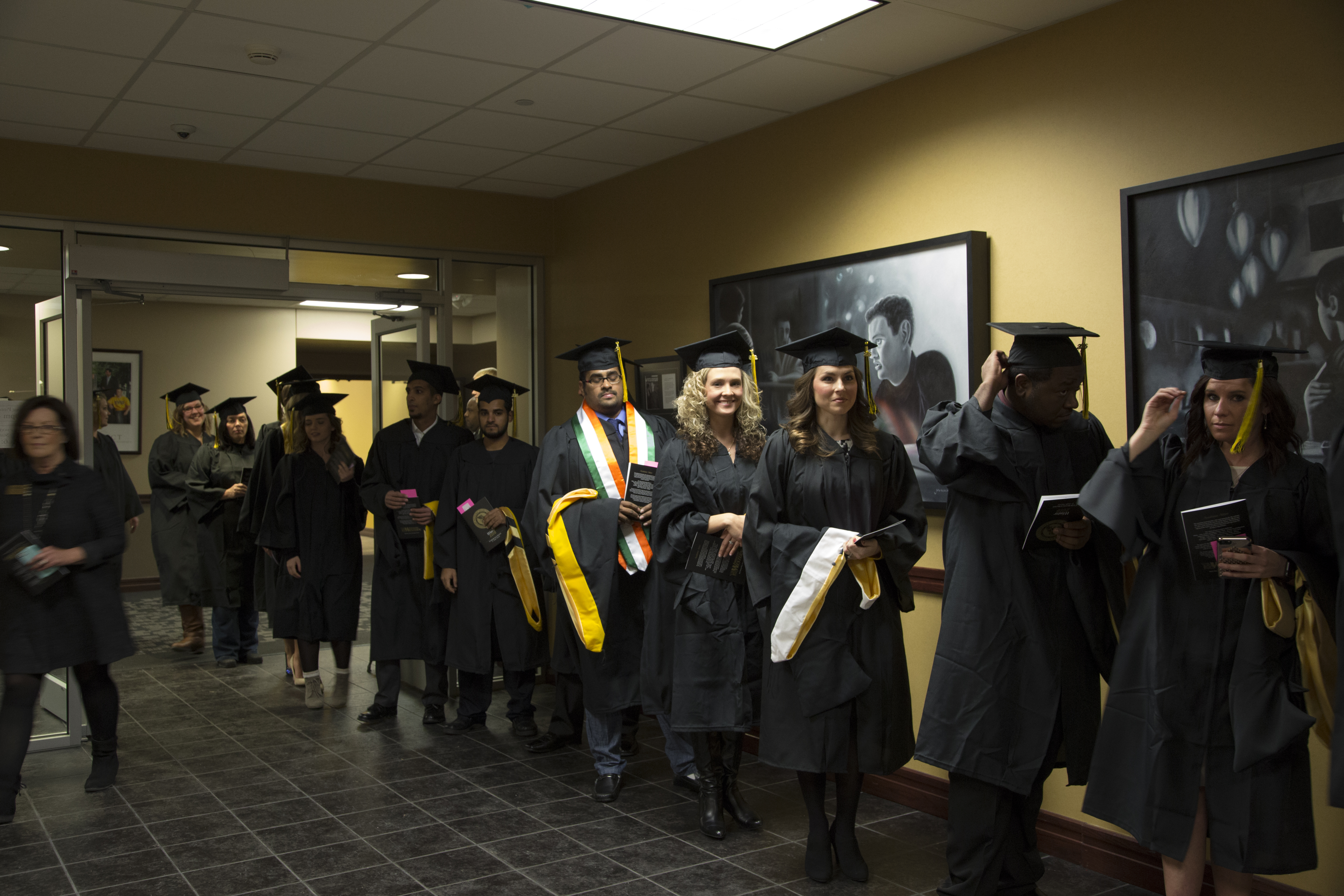 The rescheduled ceremonies lacked traditional Western graduation aspects, as well, due to the short notice. Instead of being held in the gymnasium, they were held in the Fulkerson Center. The symphonic wind ensemble did not attend and play, nor did several professors and school officials.